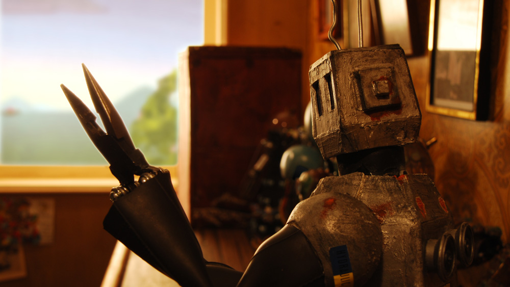 Amour Robotic is a short animated film shot on a Nikon DSLR camera using stop motion animation techniques combined with 2d animation and motion graphics. Matthew Hoddy designed the robots and the models were all hand made by Caitlin Major using recycled materials. It was shot in Hugh Major’s studio in Matakana on a set, which was painstakingly designed, built and dressed by Caitlin and Matt. The detail in the setting comes from the abundance of props locally sourced around Auckland from locals and op-shops.